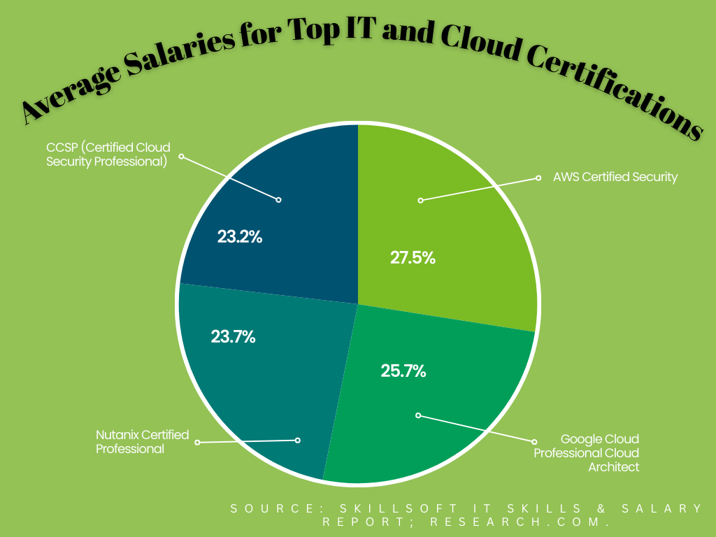 AWS Certified Security at $203,597. Google Cloud Professional Cloud Architect at $190,204. Nutanix Certified Professional at $175,409. CCSP (Certified Cloud Security Professional) at $171,524, per Skillsoft.